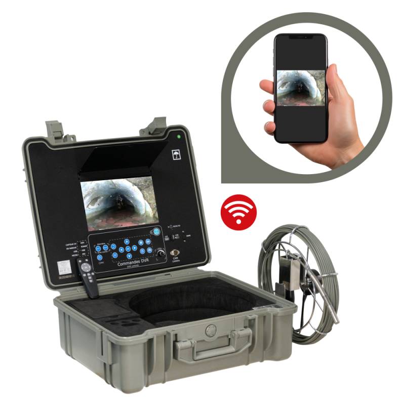 La caméra d’inspection Tubicam® R23 HD permet l’inspection horizontale des conduits de canalisations à partir de Ø30 mm jusqu’à Ø200 mm de diamètre, afin d’identifier un problème (fissures, avaries, bouchons) ou pour un simple contrôle de routine. La mallette HD est équipée d’une connexion WiFi pour visualiser l’intervention sur téléphone portable.